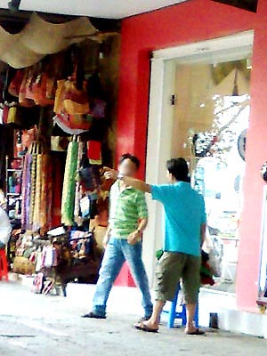 Khi khách vừa mở lời, gương mặt của anh này trong phút chốc chợt sáng rỡ. Quay qua người phụ nữ đi cùng, người này nháy mắt ra hiệu cho chị ta ra chỗ khác rồi chèo kéo vị khách đến trước “sạp hàng” sextoy của mình. Đó là vài thùng các-tông nằm khiêm tốn trên vỉa hè, ranh giới giữa hai cửa hàng bán tranh ảnh và quà lưu niệm lộng lẫy, bật đèn sáng trưng giữa ban ngày. Trên các thùng này chất ngổn ngang sách báo, đĩa CD, đồ chơi tình dục và một đống… quần lót nam nữ đủ màu sặc sỡ.